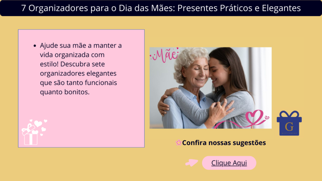 Organizadores para Dia das Mães – está chegando o dia das mães e encontrar o presente perfeito pode ser um desafio. Uma ótima opção são os organizadores, que unem praticidade e elegância em um só item. Confira nossa seleção especial de Organizadores para Dia das Mães que vão encantar as mães que amam manter tudo em ordem.
